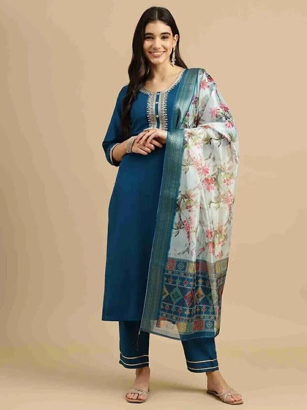 Enhance your ethnic wardrobe with this elegant women’s salwar suit and dupatta set, perfect for festive occasions, weddings, casual outings, and daily wear. Designed with comfort and tradition in mind, this ethnic set includes a beautifully tailored kurta, a matching salwar, and a complementing dupatta, offering a complete and graceful look.Crafted from high-quality fabric, the set ensures breathability and all-day comfort, while the intricate prints, embroidery, or patterns add a touch of sophistication and cultural charm. The kurta comes with a stylish neckline and sleeve pattern that flatters all body types. The matching salwar provides ease of movement and a relaxed fit, and the dupatta adds flair to the overall ensemble.This ethnic suit set is ideal for those who appreciate a blend of traditional and modern fashion, and it pairs well with ethnic jewellery and footwear. Whether it’s a family gathering, office party, or a simple festive celebration, this suit set is your go-to choice for looking effortlessly stylish.