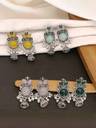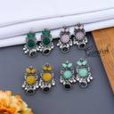 Beautiful Unique Design Oxidised Silver Stud Earring | Women's Latest Design Monalisa Earrings | Ethnic Stone Earrings | Oxidized Stone Earrings |Stone Earrings for Girls & Women| Pair of Stone Studs | Premium Quality Brass Stone Studs | Pair of Stone Earring by Jewellery Studio