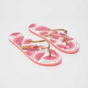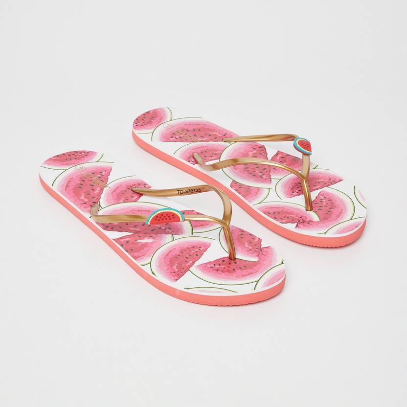 A pair of casual slippers with an eye-catching print and a V-strap detail for added comfort. Flaunt it at home for tris to the beach for a stylish appearance.