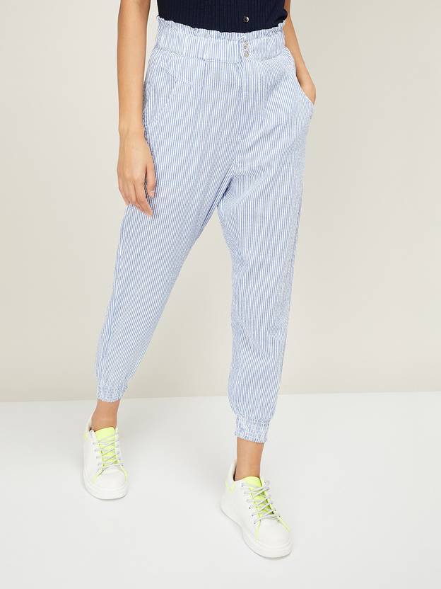 Women Regular Fit Blue Pure Cotton Trousers
