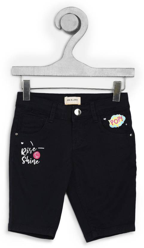 GINI & JONY Capri For Girls Casual Solid Cotton Blend (Dark Blue Pack of 1)