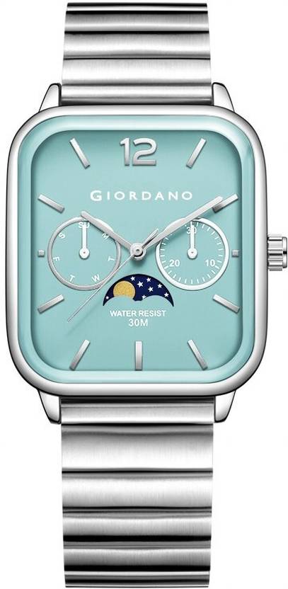Giordano classic Square analog Watch for men with Moon Phase Display and Stainless Steel strap - GZ-50117