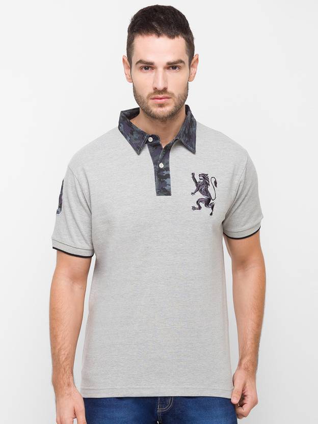 GIORDANO Men Solid Polo Neck Pure Cotton Grey T-Shirt