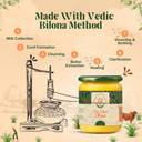 | Other Features | - 𝟏. 𝐁𝐈𝐋𝐎𝐍𝐀-𝐂𝐇𝐔𝐑𝐍𝐄𝐃 𝐀𝟐 𝐃𝐄𝐒𝐈 𝐆𝐈𝐑 𝐂𝐎𝐖 𝐆𝐇𝐄𝐄: Crafted from the A2 milk of grass-fed Gir cows in Gujarat, our ghee is made in small batches using the traditional Bilona method. Each jar reflects purity, care, and the highest standards of quality. We never use hormones or forceful methods to increase milk production., 𝟐. 𝐓𝐑𝐀𝐃𝐈𝐓𝐈𝐎𝐍𝐀𝐋𝐋𝐘 𝐌𝐀𝐃𝐄 𝐅𝐑𝐎𝐌 𝐂𝐔𝐑𝐃: Our ghee is made from curd, not cream—just as it should be. Fresh A2 milk is boiled, naturally set into curd, and hand-churned in both directions using a wooden bilona. The butter obtained is then slowly simmered to perfection. This artisanal process gives our ghee its rich aroma, grainy texture, and wholesome flavor., 𝟑. 𝐍𝐔𝐓𝐑𝐈𝐓𝐈𝐎𝐍-𝐑𝐈𝐂𝐇 𝐆𝐎𝐎𝐃𝐍𝐄𝐒𝐒: Packed with Omega-3 and Omega-6 fatty acids, our ghee is also rich in vitamins A, E, K, and conjugated linoleic acid. High in butyric acid and antioxidants, it supports digestion, boosts immunity, and helps detox the body naturally.