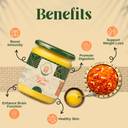 | Usage Instructions | - 𝟏. 𝐅𝐨𝐫 𝐂𝐨𝐨𝐤𝐢𝐧𝐠: Add to warm milk, spread on rotis, or use in daily cooking for added nutrition and flavor. 𝟐. 𝐅𝐨𝐫 𝐒𝐤𝐢𝐧𝐜𝐚𝐫𝐞: Mix with besan for a nourishing face mask. 𝟑. 𝐅𝐨𝐫 𝐌𝐚𝐬𝐬𝐚𝐠𝐞: Ideal for baby and adult massages thanks to its moisturizing and healing properties.