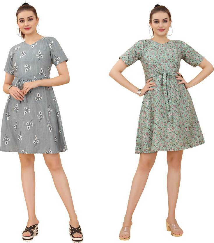 COZKE ENTERPRISE Women A-line Multicolor Above Knee/Mid Thigh Length Dress