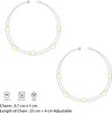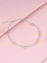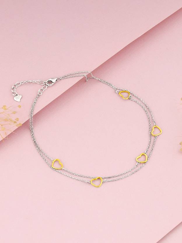 This silver and golden dual-tone anklet features heat motifs interspaced in a two-layered chain.