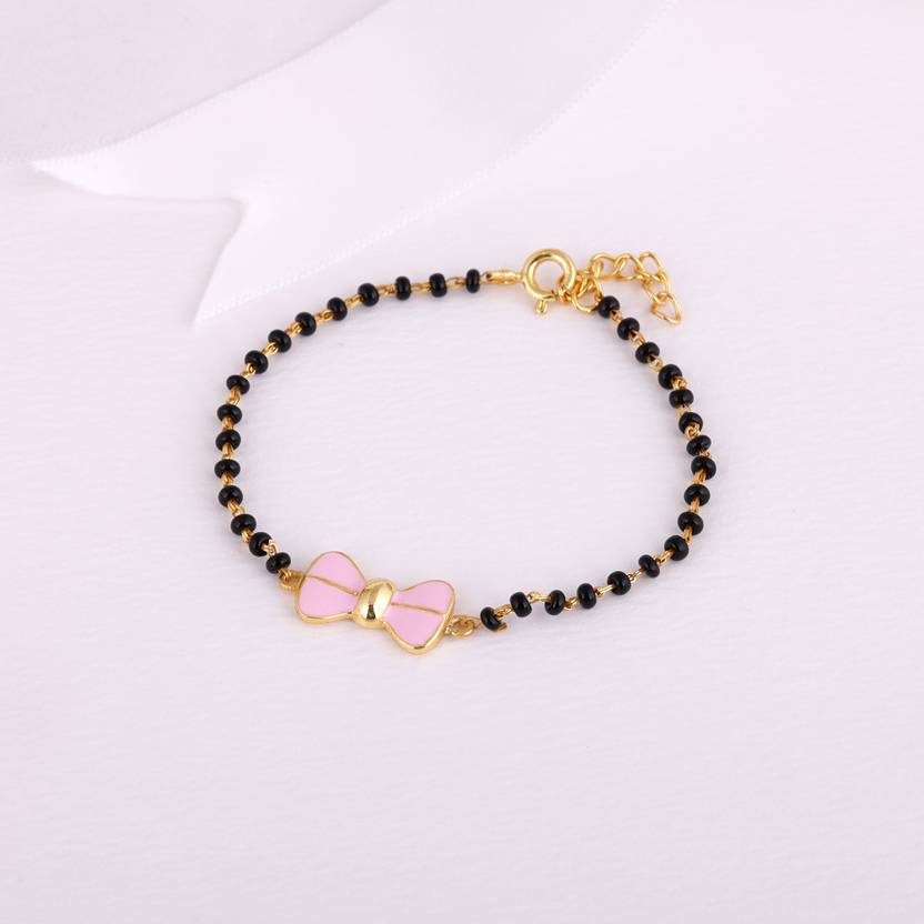 The Golden Pink Bow Infant Bracelet is inspired by cute bow hair clips we see little girls wearing. They look so adorable!