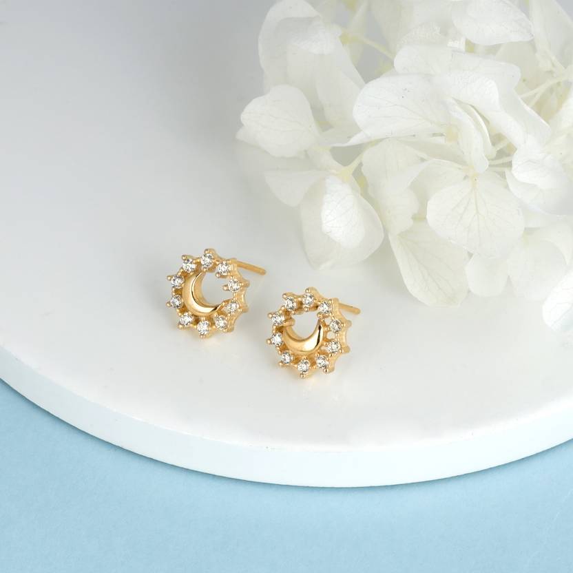 Sterling Silver Half Moon Studs for Womens and Girls Zircon Sterling Silver Stud Earring