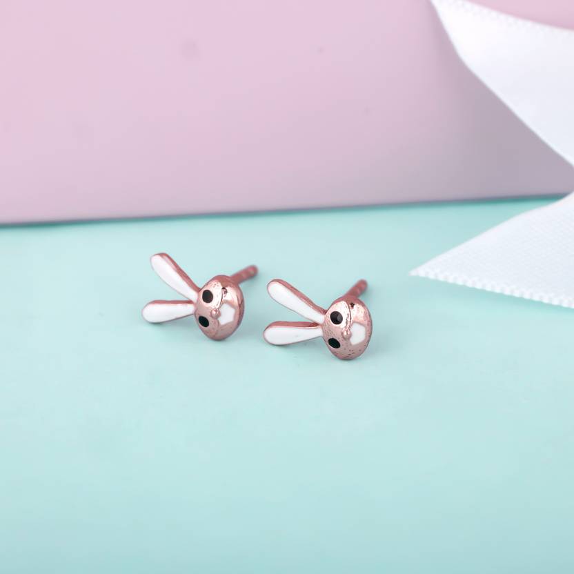 Sterling Silver Rose Gold Cute Bunny Kids Earrings for Kids Sterling Silver Stud Earring