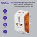 Gizga Essentials 3 Pin Multi Plug Socket | Universal Adapter with Compact Design, (Pack of 3) 6 A Three Pin Socket