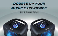Owing to its TWS function, this speaker enables wireless connection between two speakers, delivering an excellent stereo sound experience.