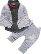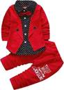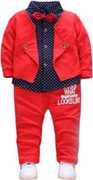 This High Quality Product is made from a 95% Cotton and 5% Spandex Combination to Ensure a Smooth, Stretchable and Comfortable Fit for your Little one. Package Includes: 1 Blazer, Inner Shirt and Red Bow Attached together as a single piece and 1 Pant. Specifically Designed to Ensure that your Little one Lights up every Event as the Happiest, Most Elegant and the Brightest Star. Style your child with Hopscotch's trendy Blazer Style Shirt and Pant Set that instantly makes a style statement! The attractive red bow contrasts well with the full set making it ideal to be worn on those family casual outings or even a birthday party! As it is made with comfortable and stretchable fabric, be sure that your kid will love this! It's no doubt that this set will turn heads as the shirt features a unique and attractive blazer style design that instantly accentuates the piece altogether. The pant also comes in matching shades. The red bow is like the cherry on top! The set is made with a combination of cotton and spandex fabric. Together, this offers sheer comfort on your baby’s skin as it easily absorbs sweat and is also breathable. The spandex fabric adds a dash of stretchability making the set comfortable for an all day event! Wash the T-shirt and pants separately from the bow. Use the gentle cycle when using the washing machine or simple handwash with a mild detergent to make it look brand new!