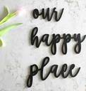 GK Design Our Happy Place MDF laser cutout for home & office (15 cm X 12 cm, Black)