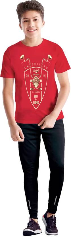 Boys Casual T-shirt Track Pants (Red, Black)