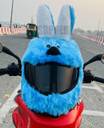Trendy Funny Blue Bunny Helmet Cover For Biker With Keychain