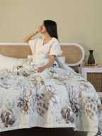 GKM Printed Double Comforter for AC Room (Cotton, Grey, Blue)