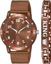 GK-529+BROWN KING BRACELET NEW STYLISH BROWN DIAL-PU BROWN STRAP&BROWN KING BRACELET-COMBO SET FOR MEN&BOYS ANALOG WATCH-FOR&BOYS