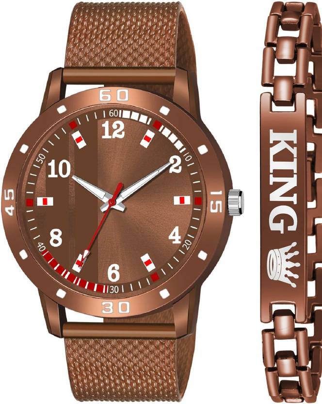 GKV Analog Watch - For Men GK-529+BROWN KING BRACELET NEW STYLISH BROWN DIAL-PU BROWN STRAP&BROWN KING BRACELET-COMBO SET FOR MEN&BOYS ANALOG WATCH-FOR&BOYS