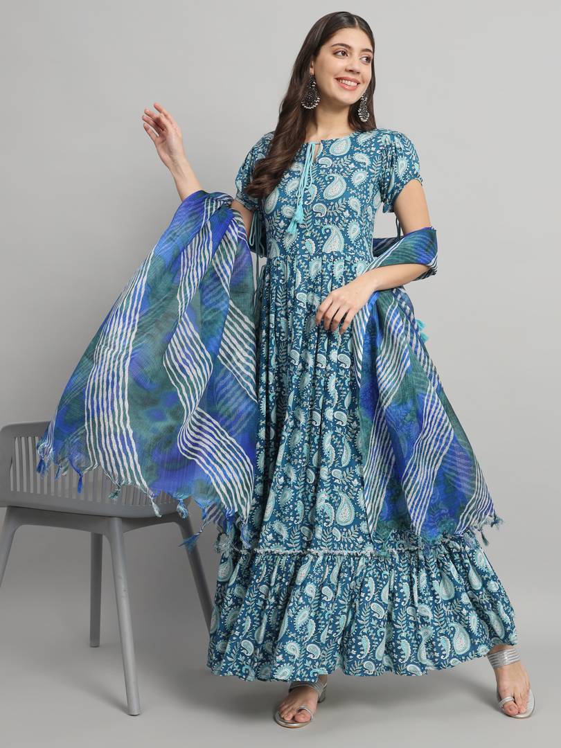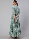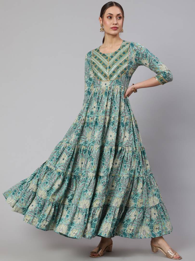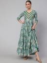 Printed Pure Cotton Stitched Flared/A-line Gown (Green)