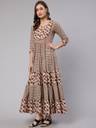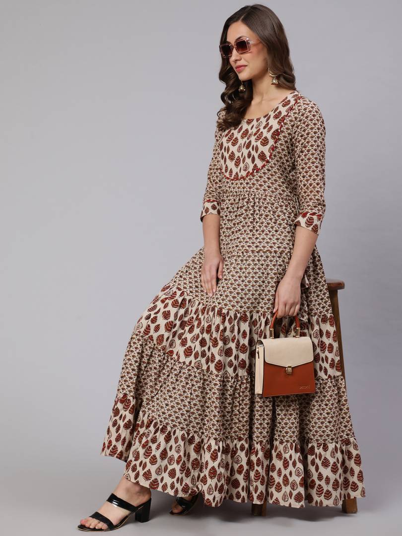 Printed Pure Cotton Stitched Flared/A-line Gown (Red)
