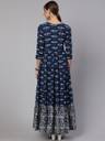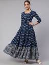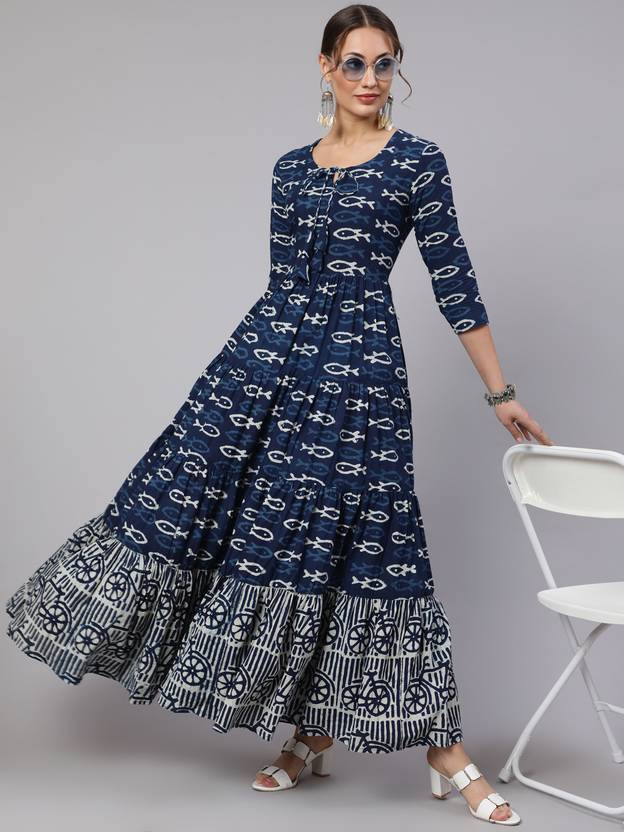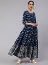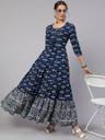 Printed Pure Cotton Stitched Flared/A-line Gown (Blue)