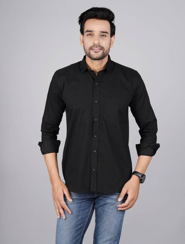 Pure Cotton Plain Black Shirt For Men .Style By Abhishek With Height of 6.1 And fare Skin Color.