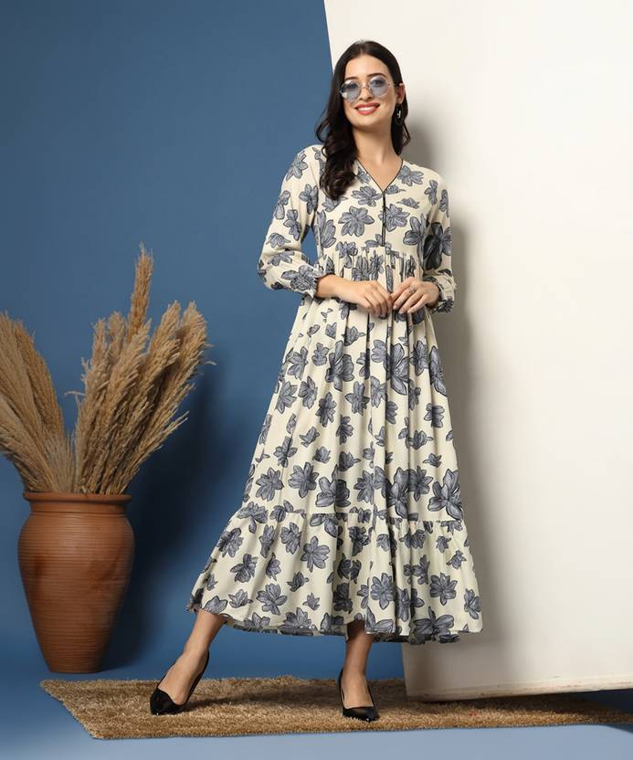 GLAMALUE Women Fit and Flare White Maxi/Full Length Dress