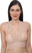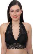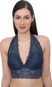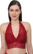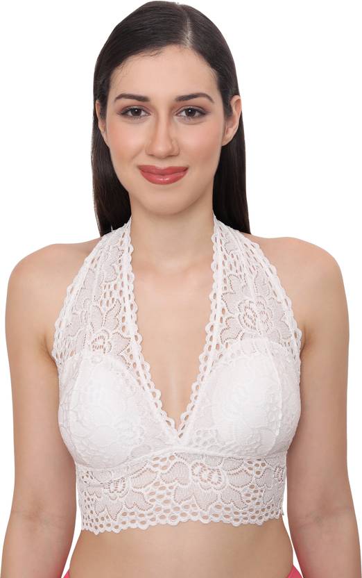 Material Composition-- Fabric composition: 91% Nylon Lace, 9% spandex; lining composition: 100% polyester., Size: L, Best fits 32-34 inch bust size, Cup Size B & C, Wire-free halter bra with soft fabric and Removable pads, keep you comfortable and relaxed., Deep v plunge neckline enhances your sexy curves and match to v-necks or low-cut evening wear.