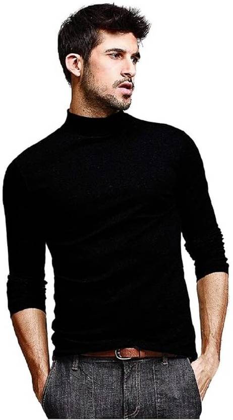 GLAMPANDA Solid Men High Neck Black T-Shirt