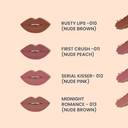 Glamveda X Rashami Desai Mini Liquid Lipstick Set of 4 in the Mocha Combo, featuring a sophisticated selection of perfect nude shades. This set includes the versatile hues ""Nude Brown - Rusty Lips - 010"", ""Nude Peach - First crush - 011"", ""Nude Pink - Serial kisser - 012"", and ""Nude Brown - Midnight Romance - 013"", curated to complement any occasion with elegance and style.