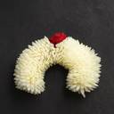 This is an elegant artificial flower gajra (hair garland or veni) in the classic, contrasting colors of white and red, which are traditional and highly popular in South Asian hair accessories. The body of the gajra is composed of closely clustered, fluffy white artificial flowers, resembling traditional Jasmine (Mogra) or Tuberose (Rajanigandha) flowers, which symbolize purity and peace. A single, vibrant red rose is placed prominently in the center of the arc, creating a beautiful focal point. The gajra is shaped like a crescent or semi-circle, specifically designed to be easily and securely wrapped around a traditional hair bun (juda) or braided hairstyle, adding a touch of floral elegance. Since it is artificial, this decorative piece is reusable, durable, and an affordable alternative to fresh flowers for prolonged events. This piece is perfect for Indian weddings, festivals, traditional dance performances, and other celebratory occasions.