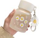 Add a touch of charm to your daily hydration routine with this 300ml frosted glass water bottle. Decorated with a whimsical daisy pattern, it brings a cheerful vibe to every sip. The bottle features a secure white lid and a handy carrying rope, making it easy to take on the go—whether you're drinking water, juice, tea, or coffee. Crafted from durable frosted glass, it offers a premium feel that's built for everyday use. Its compact size fits perfectly on your desk, in your bag, or with you on outdoor adventures. The wide-mouth opening makes filling and cleaning effortless, and it's made from BPA-free materials for added peace of mind. With a perfect balance of style and functionality, this bottle is ideal for individual servings and staying refreshed throughout the day. miniso bottle, small bottle, coffee bottle, 300 ml water bottle, drinking water bottle, glass coffee mugs, cute bottle, aesthetic water bottle korean