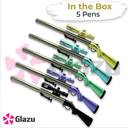 Pack of 5 Multicolor Pens: With this set, you'll receive five pens in different vibrant colors. Switch between designs to add a touch of variety., Gun-Shaped Design: The GLAZU Gun Shaped Pen replicates the iconic Kar98k rifle, capturing its essence in an innovative writing instrument. Each pen is meticulously designed, featuring intricate details that make it stand out as a collector's item., LED Light and Stand: Illuminate your writing with the built-in LED light, providing a unique touch and enhancing visibility in low-light conditions. The accompanying stand adds a stylish element to your workspace, allowing you to showcase your pens when not in use., Versatile Playing and Writing: Experience the joy of both playing and writing with these pens. Whether you're jotting down notes, sketching, or engaging in creative projects, the GLAZU Gun Shaped Pens offer a versatile solution for various activities.