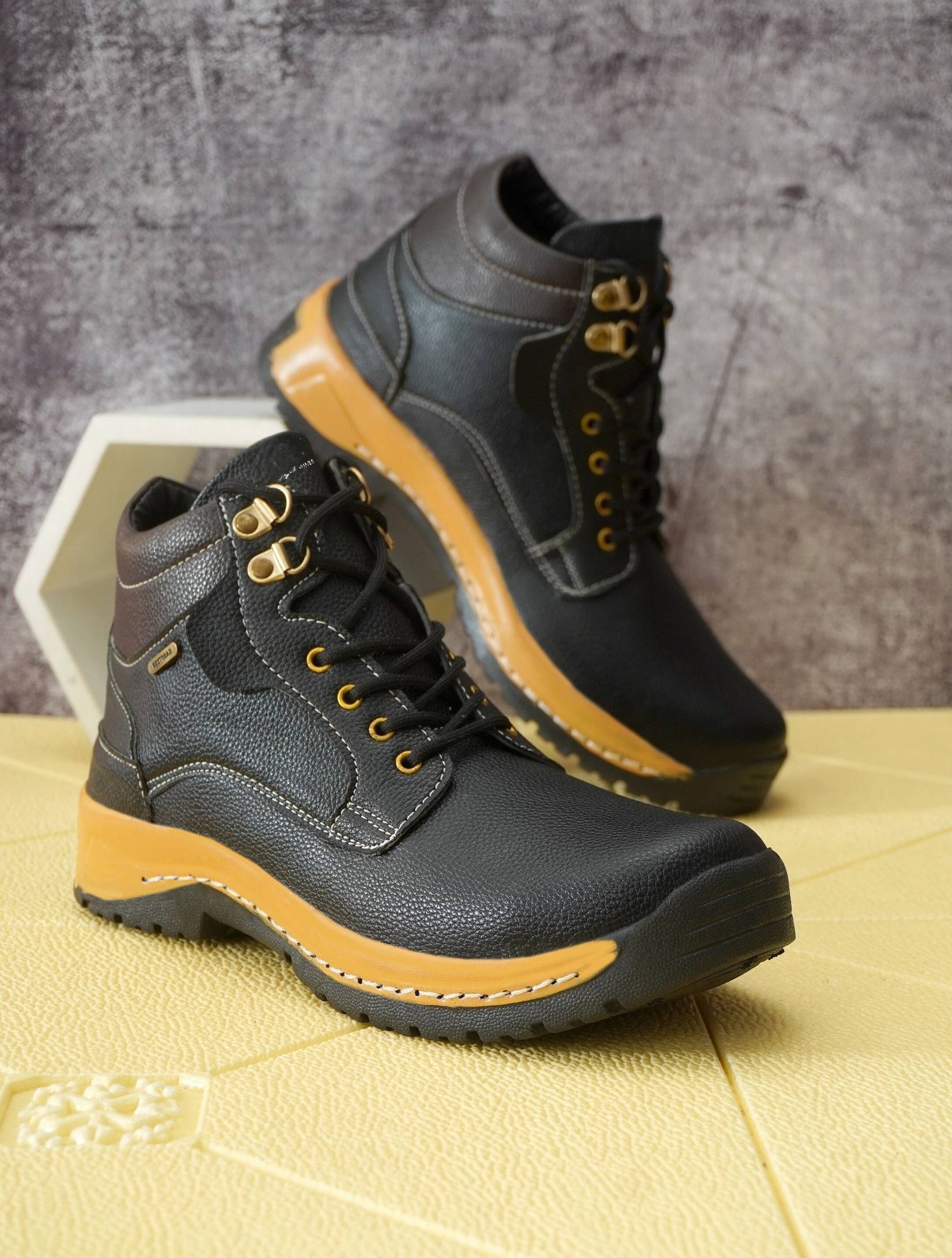 Step out in confidence and style with these Rugged Tan Leather Lace-Up Boots, crafted for men who value both fashion and durability. Designed with a bold outdoor-inspired look, these boots offer the perfect blend of comfort, toughness, and timeless appeal. Made from premium textured synthetic leather, the rich tan upper is complemented by contrast black padded collars for extra ankle support. The sturdy dual-tone sole provides excellent traction and shock absorption, ensuring stability on every surface — from city streets to weekend adventures. Whether you’re pairing them with jeans, chinos, or casual trousers, these boots bring a touch of rugged sophistication to your everyday look.