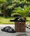 Experience effortless comfort and modern style with these men’s black slip-on sandals. Designed with a sleek cross-strap upper and toe-loop detail, they provide a secure fit and a contemporary look perfect for casual wear. The lightweight, durable construction ensures long-lasting comfort, while the cushioned sole supports your feet throughout the day.Whether you’re heading to the beach, running errands, or relaxing at home, these sandals are your go-to choice for both comfort and versatility.