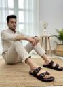 Step into comfort and style with these premium men’s slip-on sandals. Crafted from high-quality synthetic leather, these sandals feature a sleek brown finish complemented by dual buckle straps for a secure, adjustable fit. The open-toe design ensures breathability, while the cushioned footbed provides lasting comfort throughout the day.