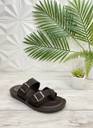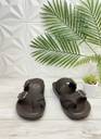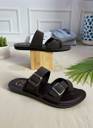 Stylish brown faux leather upper, Double buckle straps for adjustable fit Criss-cross toe loop for added support Cushioned footbed for all-day comfort Durable black rubber outsole with grip Ideal for casual wear, summer outings, or indoor lounging.