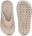 These comfortable and stylish beige flip-flops feature a thick, cushioned sole for enhanced comfort and support. The durable, lightweight material, likely EVA, makes them ideal for casual wear, beach outings, or poolside activities. Designed for easy slip-on convenience, they have a classic thong strap and a textured footbed for better grip. Their solid color and minimalist design ensure versatility, pairing well with shorts, swimwear, or loungewear. Perfect for everyday use, offering both comfort and a modern aesthetic.