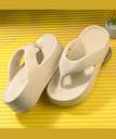 These comfortable and stylish beige flip-flops feature a thick, cushioned sole for enhanced comfort and support. The durable, lightweight material, likely EVA, makes them ideal for casual wear, beach outings, or poolside activities. Designed for easy slip-on convenience, they have a classic thong strap and a textured footbed for better grip. Their solid color and minimalist design ensure versatility, pairing well with shorts, swimwear, or loungewear. Perfect for everyday use, offering both comfort and a modern aesthetic.