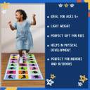 Unleash the joy of classic outdoor games with this jumbo hopscotch play mat! Perfect for kids aged 3 and up, this unique balancing game is a delightful blend of traditional Indian games like Kith-Kith, Stapu, Langdi, etc. The large size allows ample space for jumping, hopping, and balancing, fostering physical activity and coordination skills. With vibrant foot printing stickers, this mat transforms any floor into an engaging playground. Encourage active play, social interaction, and endless laughter with this nostalgic yet modern take on a beloved childhood pastime. Crafted with durable materials, this hopscotch game promises hours of fun, both indoors and outdoors. Relive the magic of your childhood or introduce your little ones to the timeless joy of hopscotch! *Unique Balancing Game* - An exciting hopscotch game with jumbo play mat for kids aged 3 years and above. *Skill Development* - Promotes physical coordination, balance, and cognitive abilities as well as mindful skill development. *Large Size* - The mat's generous dimensions provide ample space for active playtime. *Party Favours* - Ideal for kids' parties, baby showers, and gifting. *Portable Design* - Lightweight and easy to carry, making it ideal for indoor and outdoor play.