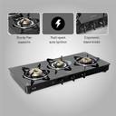 Glen 3 Burner Glass Gas Stove with Brass Burner Black (1033 GT XL BB BL AI) Glass Automatic Gas Stove (3 Burners)