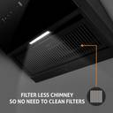 Glen CH6064AC90 Glass Filterless Chimney with Motion Sensor 1200 m3/h 90cm Auto Clean Wall Mounted BLACK 1200 CMH Chimney