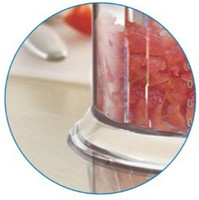 This compact jar is ideal for chopping, mashing or pureeing small quantities of food items such as tomatoes, onions, nuts or bananas quickly and easily. Also, its anti-skid base provides perfect stability.