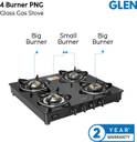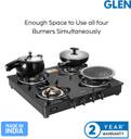 Glen Gas Stove 4 Burner Glass Top Fuel Efficient Brass Burners 2 Year Warranty Glass Manual Gas Stove (4 Burners)