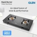Glen Rapid LPG Gas Stoves 2 Burner | Brass Burner | ISI Certified | Revolving Inlet Glass Manual Gas Stove (2 Burners)