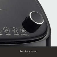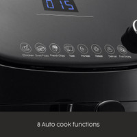 This appliance features eight auto cook functions that include sweet potato, chicken, fries, toast, preheat, defrost, reheat, and fruit drying.