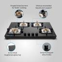 Glen Ultra Slim Free Standing Hob Gas Stove | Forged brass burners | Auto Ignition Glass Automatic Hob (4 Burners)