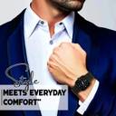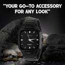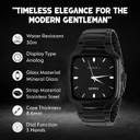 Discover timeless elegance with this sophisticated analog watch designed for the modern gentleman. The sleek black stainless steel timepiece features a minimalist square dial with precise 3-hand movement, protected by durable mineral glass. The robust construction includes a comfortable stainless steel strap and 8.6mm thin case profile that sits elegantly on the wrist. With 30m water resistance, this versatile watch seamlessly transitions from business meetings to evening occasions. The clean black-on-black aesthetic is complemented by striking white markers and hands, offering excellent readability while maintaining its refined appearance. Perfect for the distinguished individual who appreciates classic style with contemporary appeal.