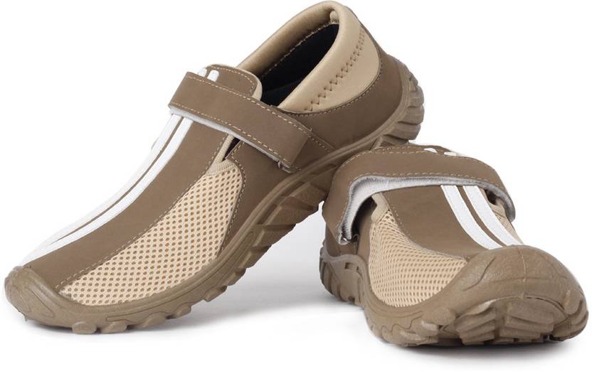 A pair of moccasins are a must-have in a man’s footwear collection. Complete your casual footwear collection with these beige moccasins that satisfy more than just your style needs. With a cushioned ankle and velcro designing, these moccasins take you to the peak of comfort. A net pattern on the sides adds to your style quotient. Pull on a pair of chinos, button up a shirt and slip into these Gliders Newclark Walking Shoes for a magnetic appeal.